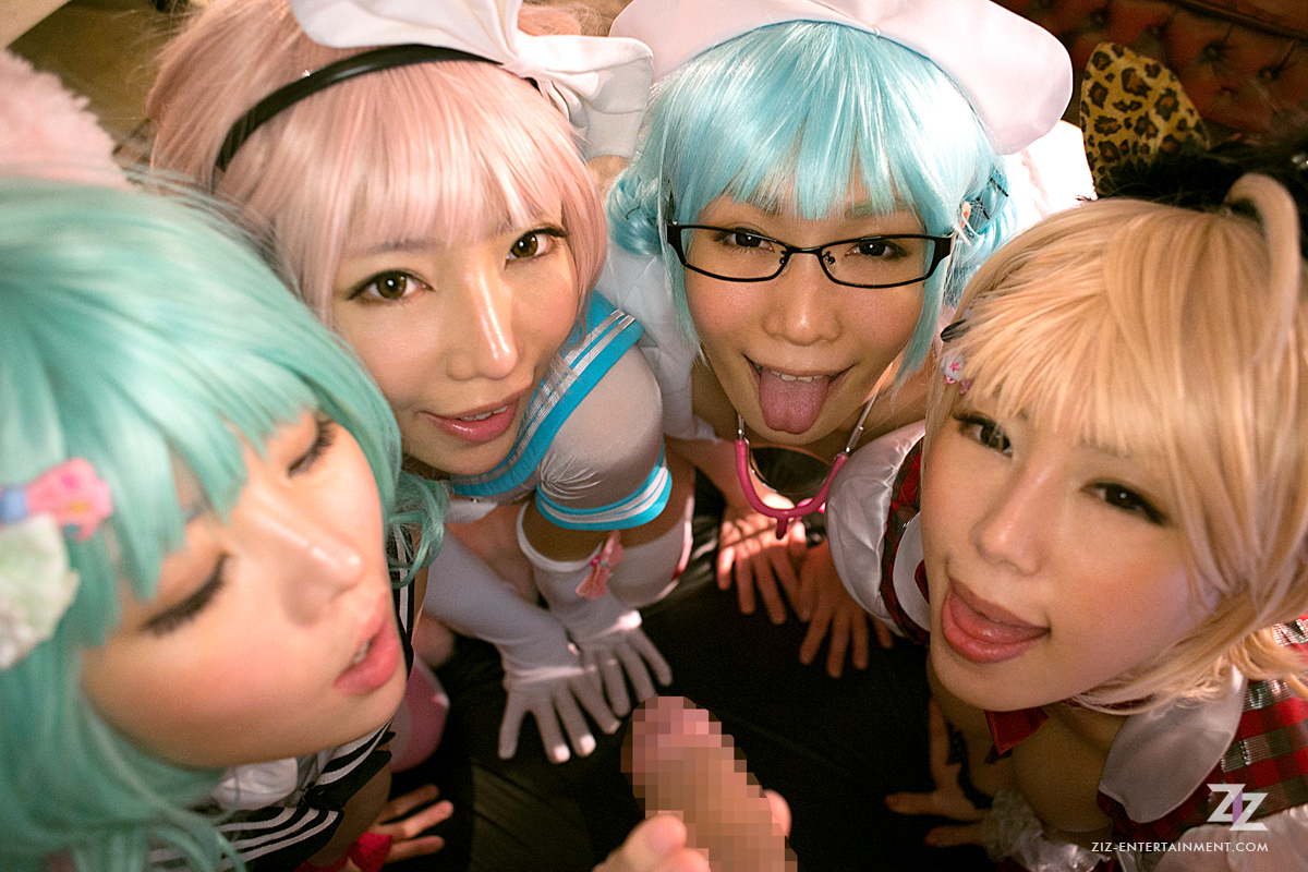 撮影と称した男たちとのコスプレ中出しオフ会。ダブルクンニ、ダブル手マンは当たり前。 男たちを横に並べてフェラ合戦を行い、数分ごとに交代しながらひたすら舐めた後は、ベッドで雑魚寝のまま挿入開始。 我慢汁と愛液がピストン運動により泡立ちながらも、男たちは腰を振ることを止めず、溜め込んだ精液を中で思う存分出し尽くす。 出た精液を指にとり、美味しそうに舐めて喜ぶコスプレ美女たちの濃厚乱交中出しオフ会をあますところなく見せちゃいます。